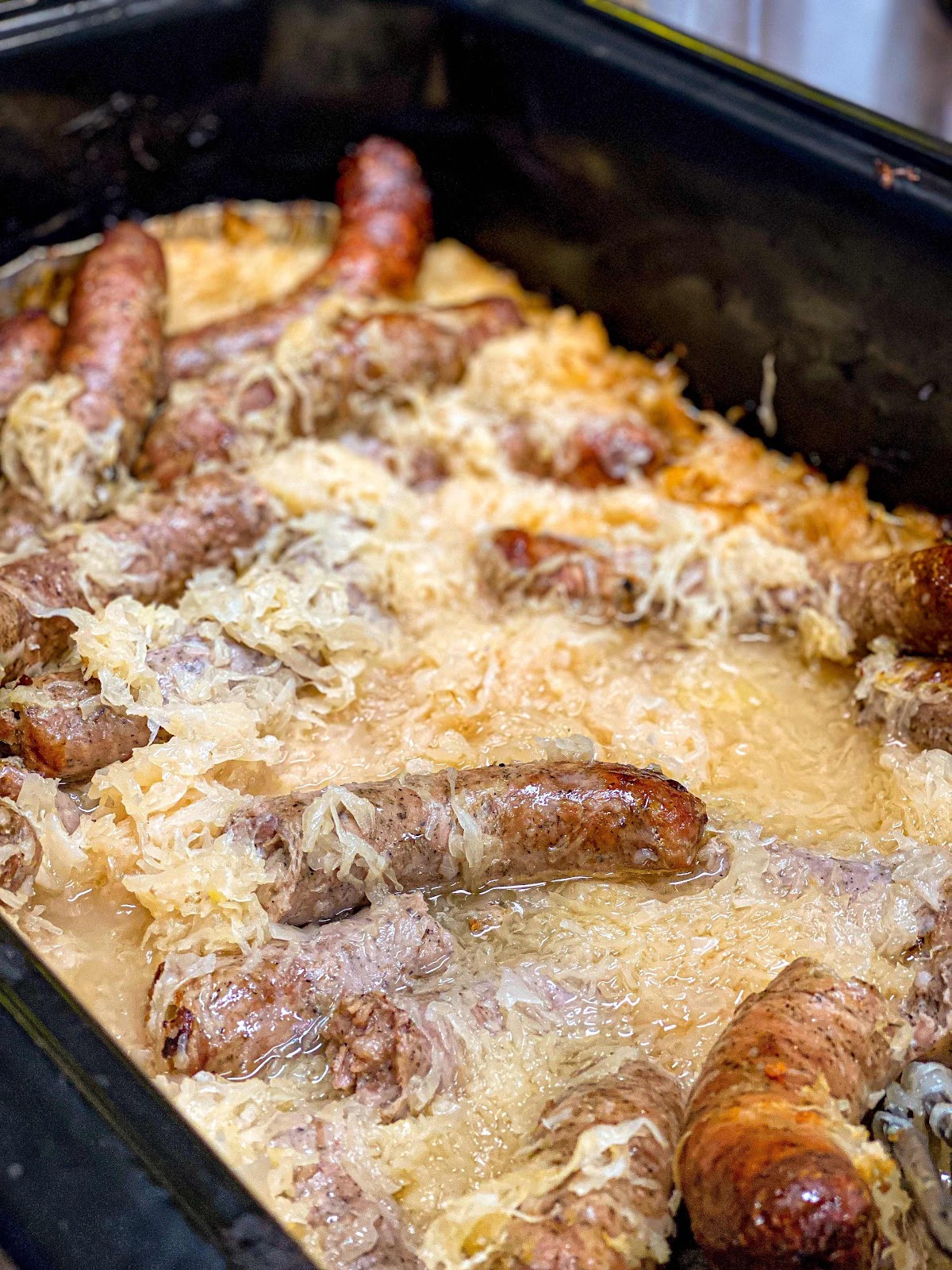 Someone always makes a trip to Stanley’s meat market down the street, and brings-in heavy links of polish kielbasa, unsmoked, brined and brown-braised, or steamed over fragrant German lager until falling-apart, or slow-cooked in a heap of mild, but tart, kraut. (Stanley’s Market is a relic, still lingering around from when the north end of Toledo was predominantly Polish.)